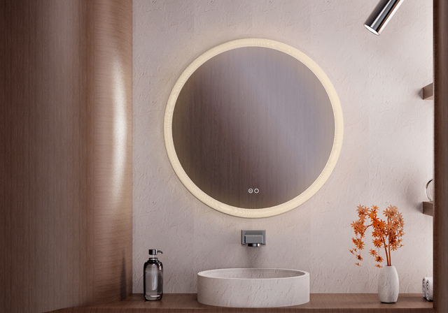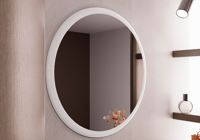 ESPELHO CIRCULAR COM MOLDURA ACRILICA EM RELEVO.